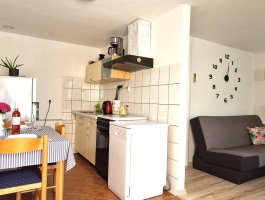 Kitchen : kitchenette, table and chairs for all persons, tableware and dishes are provided, kitchen cloth included, electric-gas stove, oven, refrigerator with freezer, coffee pot, electrickettel, toaster, dishwasher.